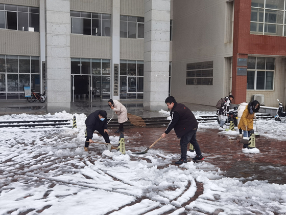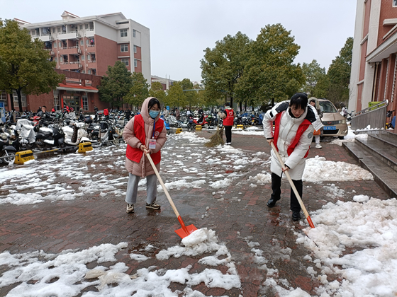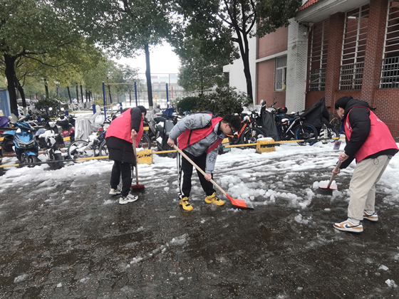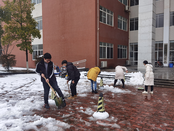 2月22日大雪突降,气温骤低。为保障道路交通安全,方便师生出行,电气与信息工程学院团委学生会成员于2月23日中午十二点半,“以雪为号”自发组织在学校云塘校区工科一号楼、至诚轩一栋、二栋开展扫雪除冰志愿活动。