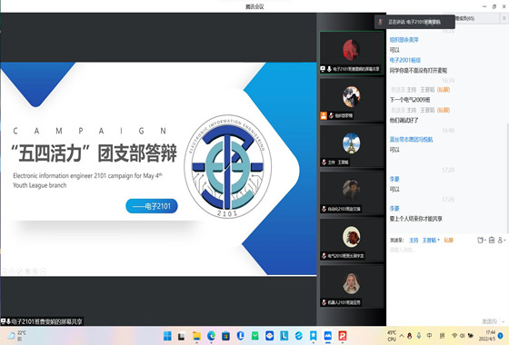 4月5日下午,电气学院2021-2022学年“五四评优”先进团支部答辩会于腾讯会议线上举行。学工办老师田孟萍、杨宸君、范凯、王迪、张一鸣及分团委各部门代表出席,本科生19级、20级和21级各班团支书参加本次答辩会。本次活动由智能电网2102班王晋韬主持。