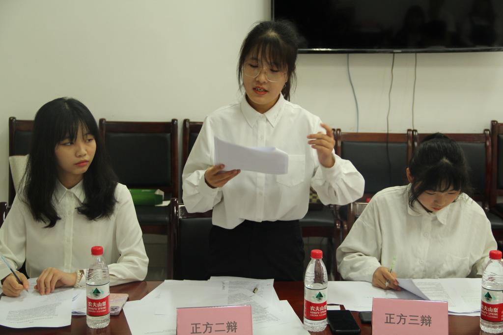 本次比赛实行单淘赛制,在一天内持续进行。马院马克思主义中国化系主任钟芙蓉、外国语学院老师陈若晨、辩论队教练杨煜雪、王寅、方睿敏、向明辉、范启程和聂伟担任评委。创新创业教育学院副院长刘志强、老师高凯,电气学院团委书记田孟萍出席。本次辩论赛由曹健韬、刘子豪、柏彤和陈倍廷主持。