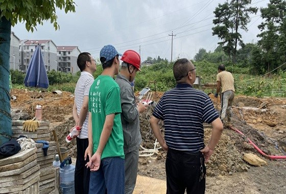 来到游家变施工现场附近,由于电线过于细小,测距仪无法直接测量电线与地面之间的高度,于是钟班长将无人机飞至与电线同一高度,再测量无人机与地面之间的高度。“建筑物离35kV高压电线垂直距离不能小于4m,水平距离不能小于3m,不然在像大雾天这种潮湿的天气下电线就会有放电的可能。”钟班长向施工方说明到,简单沟通过后,施工方和国网工作人员达成了共识,修改了施工方案。随后输电班驱车来到了游顺线003——004杆下方,从远处看,风雨过后,游顺线003——004杆发生了明显的倾斜,钟班长向我们介绍到:“这两处电线杆之前就已经人为扶正过,这次又发生倾斜,说明地基存在较大问题,需要改线。”