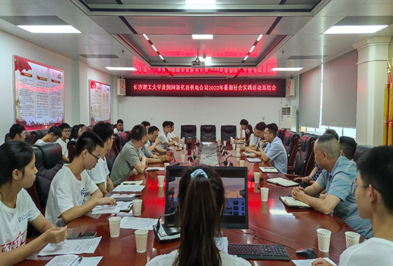 7月20日上午,电气学院赴国网新化县供电公司实践队在九楼会议室召开总结会议。国网新化县供电公司党委书记杨晓雄、营销部主任何樱、人资部主任罗磊、党建部主任李锦峰、配电部副主任伍海斌、发展部副主任胡泽忠、党建工作部副主任张叔保、团支部书记刘竞,taptap点点体育电气学院副院长马瑞、党委副书记陈仁凯、关工委常务副主任罗玉雄、实践队带队老师吴文斌和全体实践队员一同参会。会议由吴文斌主持。