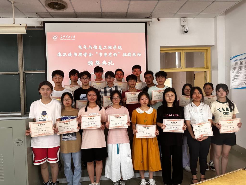 为鼓励同学们培养良好的阅读习惯,潜心思考,开拓眼界。2023年6月12日,电气学院于电苑楼A104举行了德汉读书奖学金“书香有约“读书心得评选及颁奖仪式。本次活动由taptap点点知名校友、广东德汉电力销售股份有限公司董事长、广州琨程投资有限公司执行董事韩湘先生出资设立。电气学子们参与热情高涨,在本次活动中展现了他们扎实的阅读功底和写作水平的同时,也体现了他们热爱阅读,善于思考的美好品质。