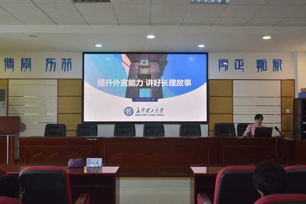 叶正芳“提升外宣能力,讲好长理故事”为主题,分别从“新闻是什么”“你在什么情况下写新闻”“新闻写法及常见误区”“新闻照片怎么拍”和“内宣与外宣如何做差异化处理”五方面展开论述。她指出,“快、热、奇”是新闻的三大特点,新闻的选题方向不仅要紧跟政策,还需要弘扬社会正能量,要真正做到讲政治、接地气、贴民生、跟热点,让有意思的事情有意义,让有意义的事情有意思。同时,她希望同学们培养好编辑思维,把握住新闻事件的角度和新度,以包容万物、井然有序的头脑和多写多练、熟能生巧的双手来不断提高自己的新闻素养。