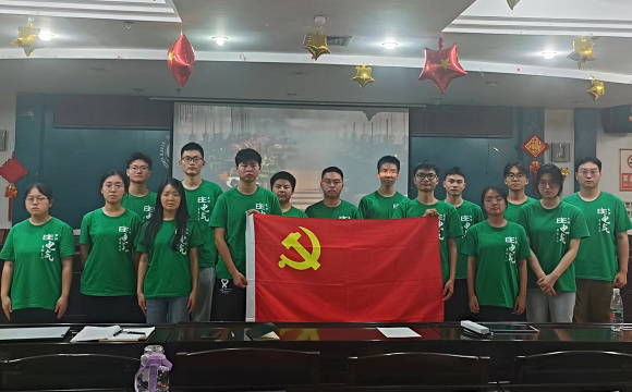 活动结束时,实践队队员李森就本次影片中红色精神进行点评和解读,进一步激发了在座队员的爱国情怀,增强了文化认同感。最后,实践队员们共举党旗进行合影留念。