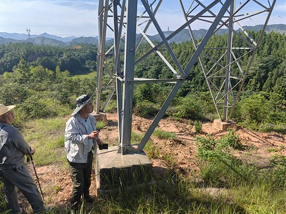 巡线工作是保障电力系统正常运行、维持电力系统正常输电的重要工作内容之一。此次巡线工作包括检查基座的稳固程度、绝缘子是否自爆、是否有候鸟筑巢等等关于输电安全方面的问题。在巡线现场,施工人员需要仔细观察塔的各个方面,从不同角度拍摄塔的情况,如发现异常,立即上报,请求检修队来处理。