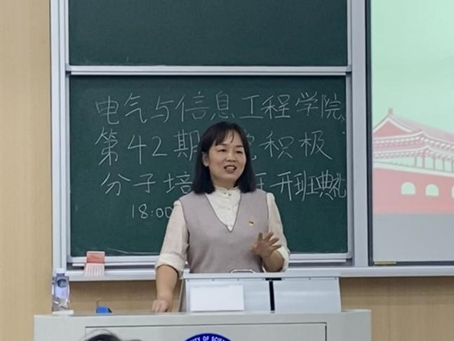 开班典礼结束后,邵巧艳以“为什么要入党”“中国共产党在你心中是一个怎样的党”“你想为党做什么”三个问题引导学生端正入党动机,详细地为入党积极分子们讲述了入党的各项条件以及党员的义务与权利。她强调党员身份是一种责任和义务,不是特权,同时也鼓励每一位积极分子以张桂梅,钟南山为代表的先进党员为榜样,对他人甘于奉献,对自己克己修身, 以党员的标准作为自我要求的准绳,不断完善自我,提高自身素养,思想上向党组织看齐,行动上向党组织靠拢。