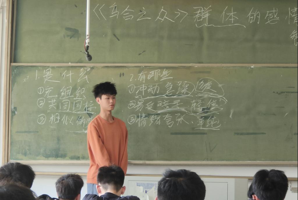 活动第二项是分享心理相关的书籍,心理委员王基训向同学们推荐《乌合之众》这本经典名作,他分享到:“群体的感染力巨大,处于群体中的人易受到暗示,容易冲动、十分多变。然而群体中的特性不总是负面的。在‘内卷’的现况中,在青年人普遍茫然之时,群体可发挥极其正面的积极作用:同学们聚在一起,为了实现共同目标,即努力成长,成就更好的自己。此时,群体“无所不能”的特点表露了出来。群体中的每一个人都坚信我们可以变得更好。”正如他所言,当一个集体拥有良好的风气时,集体的每一个成员都会往好的方向发展。智网2202班也会不断成长,努力营造“积极向上、团结进取”的优良班风。