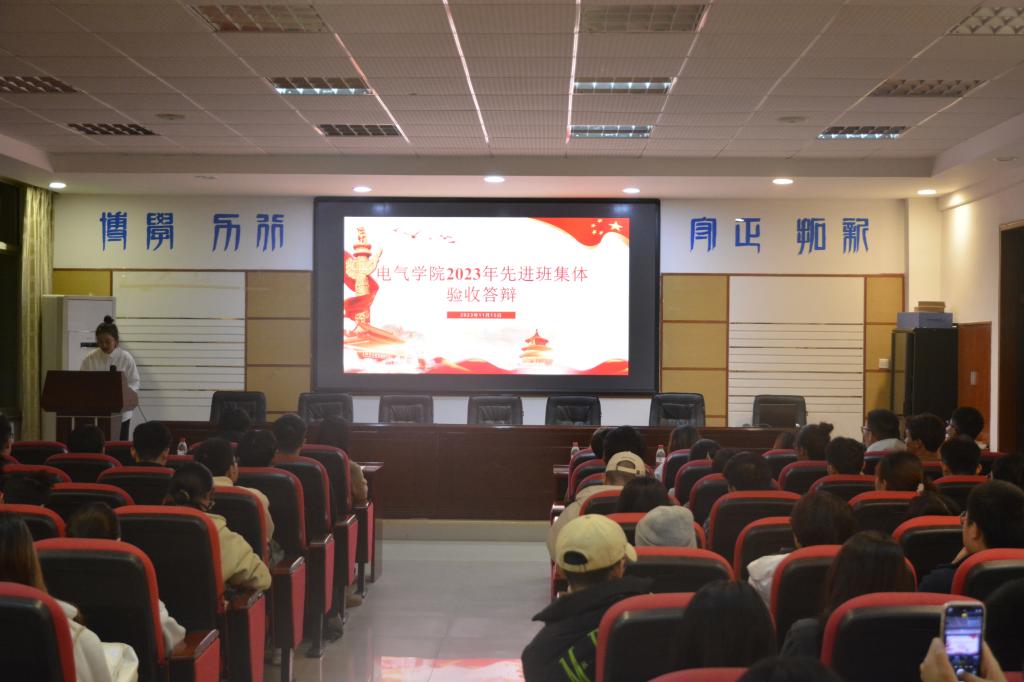 11月15日晚,电气学院于云塘校区工科一号楼B503举办2023年先进班集体验收评比答辩。电气学院党委副书记陶双、2023级辅导员周珍、2022级辅导员吴佳骐、2021级辅导员张一鸣、各年级班长团支书参会。