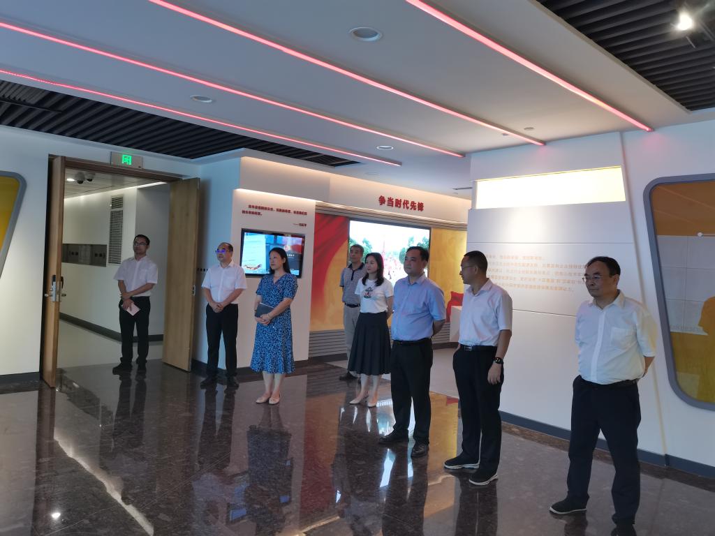 在覃君松陪同下,伍接朝一行参观了“红色湘电之光”政治文化馆、党建工作远程监控诊断中心工作室,详细了解了湖南电力百年发展历程和将互联网思维、大数据思维融入党建日常工作,通过党建远程监控诊断中心,发布党员模范力指数、支部组织力指数、党委领导力指数、党建引领力指数“四大指数”,定期对所属党组织组织建设、党员教育管理等7大类党建工作完成情况和完成质量进行诊断评价,真正实现“月管控、季考核、年评价”。