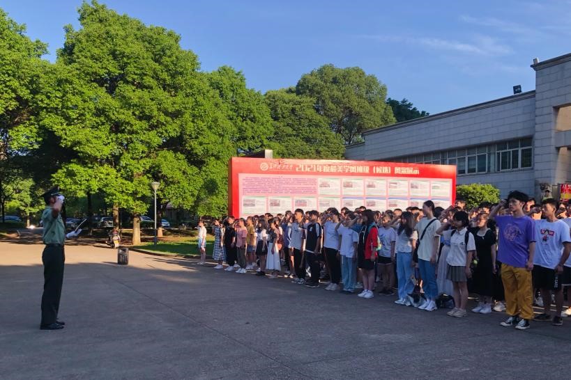 6月7日早晨,学院在金盆岭校区办公大楼前举行2020-2021学年第二学期“学党史、明信仰”升国旗仪式,2020级辅导员杨宸君及150名学生代表参加。