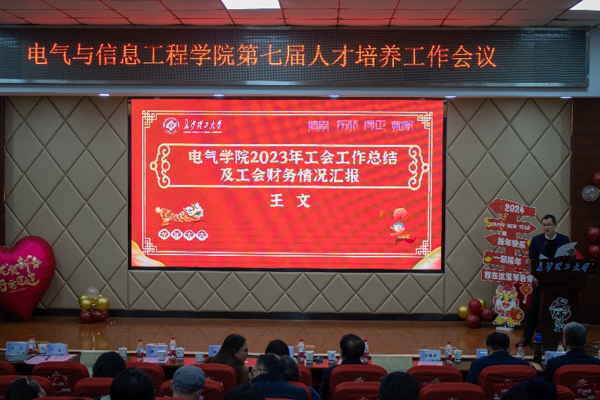副院长、学院分工会主席王文就电气学院2023年度工会工作报告和分工会财务情况。