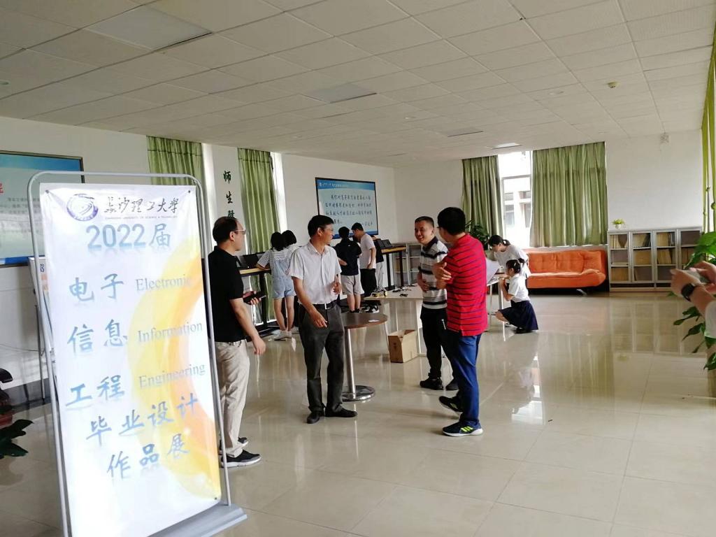 2022年6月14日上午十点,在taptap点点体育云塘校区工一B区三楼大厅举办了电气与信息工程学院电子信息工程专业2022届毕业设计作品展。本次毕设作品展邀请了电气学院副院长唐欣教授、樊绍胜教授、智电系电子专业曾喆昭、李鸿、王小华等20多位教师观摩评价,电子信息工程2018级全体毕业生以及2019、2020级部分学生参加。参加观摩评价的老师们与毕设参展作品的每位同学进行交流,探讨作品,同时给予相应的建议。老师们这最后一堂现场课不仅是传授着知识,更是表达了对即将完成学业的毕业生最美好的期许。经现场演示和老师们的评议,作品展最后评出了一、二、三等奖共8件优秀作品。
