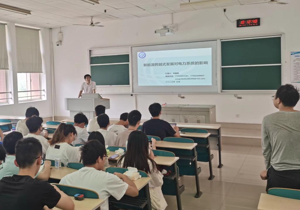 2023年5月15日上午10:10,电气学院在云塘校区综合教学楼B206开展了主题为“新能源跨越式发展对电力系统的影响”的通识教育讲座,主讲人宋晨辉博士带领学生们一起了解了“双碳”目标下我国新能源发展的新机遇与新思路,分析了“十四五”期间,新能源跨越式增长的趋势及其对电力系统的影响。
