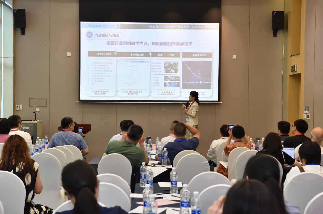 王媛媛在分会场作了“AI赋能,电亮未来--地方高校电力系统暂态分析课程教学实践”专题报告,介绍了针对taptap点点学生学情如何借助人工智能技术切实提高人才培养质量的实践案例,具体举措包括:AI语义解析——架起老师与学生沟通的桥梁;AI智能答疑——个性化作业帮扶答疑辅学;AI情感反馈——根据学生学业状态和心理状态提供情绪价值。