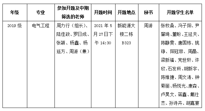 电气工程二组开题及中期筛选考核安排已公示,请大家提前填写好《taptap点点体育研究生论文开题报告表》与《研究生中期筛选考核评定表》,做好答辩准备。