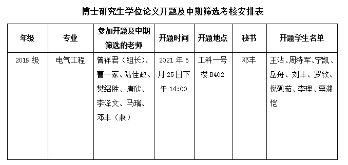 电气工程博士研究生组开题及中期筛选考核安排已公示,请大家提前填写好《taptap点点体育研究生论文开题报告表》与《研究生中期筛选考核评定表》,做好答辩准备。