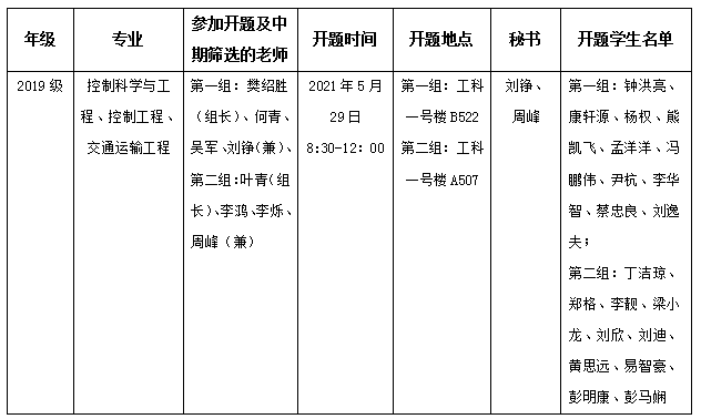 控制科学与工程、控制工程学科一组和交通运输工程组开题及中期筛选考核安排已公示,请大家提前填写好《taptap点点体育研究生论文开题报告表》与《研究生中期筛选考核评定表》,做好答辩准备。