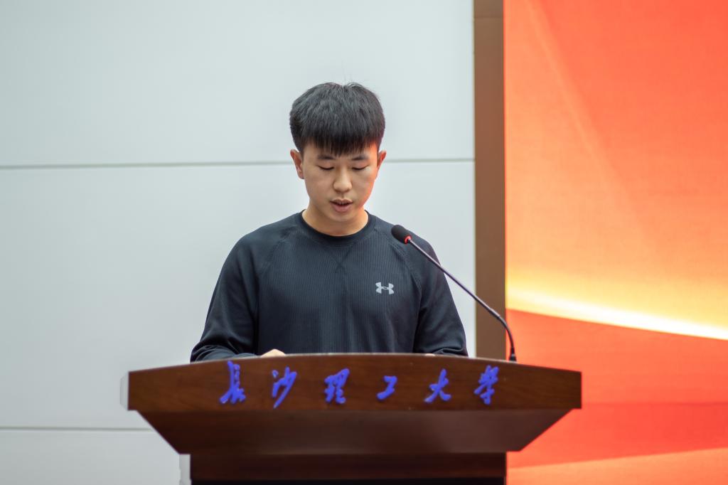2023级硕士生何泽宇代表新生发言。他指出新时代青年是中国近现代史以来最自信、最平视西方的一代,人生轨迹同强国步伐完美贴合,理应志存高远、胸怀家国、磨砺本领、勇于创新,担当起强国一代的历史责任。随后,他带领全体新生作学术诚信宣誓。