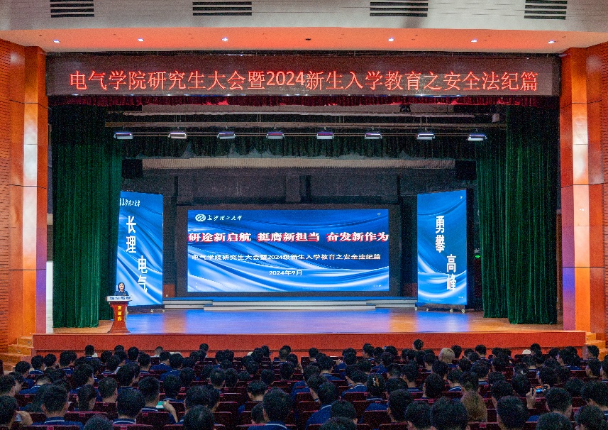 9月18日下午,电气与信息工程学院在云塘校区大会堂召开全体研究生大会暨2024级新生入学教育篇。电气学院党委书记丁丹、党委副书记周巍、副院长王文,学工办、研究生办等老师出席,电气学院全体研究生参加。大会由学工办主任、研究生辅导员楚艳鸽主持。
