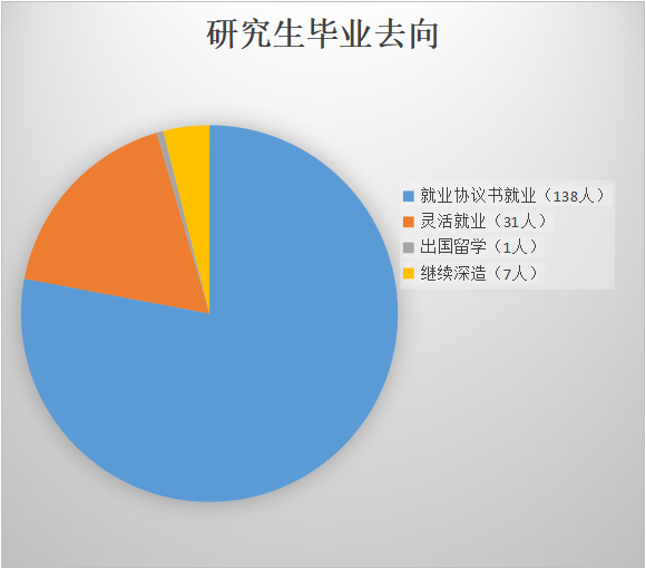 研究生毕业生中,105人到电力、热力、燃气及水生产和供应业单位就业,10人到科学研究设计单位就业,7人继续攻读博士,4人到建筑行业就业,2人到金融行业单位就业,52人到其它企业就业。
