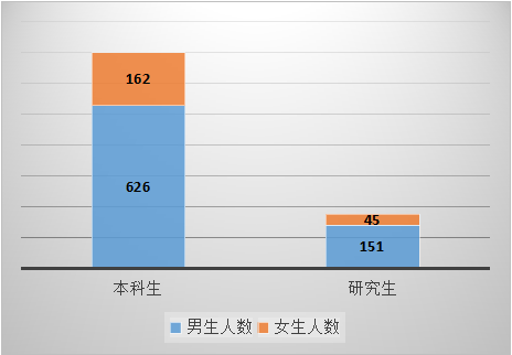 2.性别构成:硕士研究生中男生151人,女生45人;本科毕业生中男生626人,女生162人。