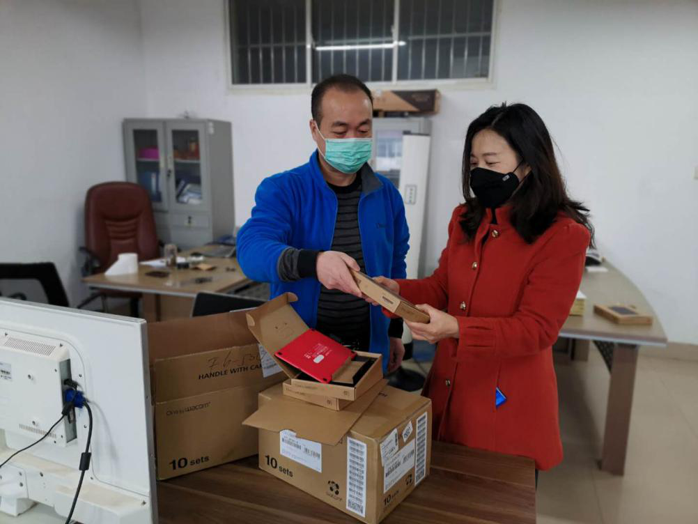 (自动化系系主任贺勇给老师们发数位板)