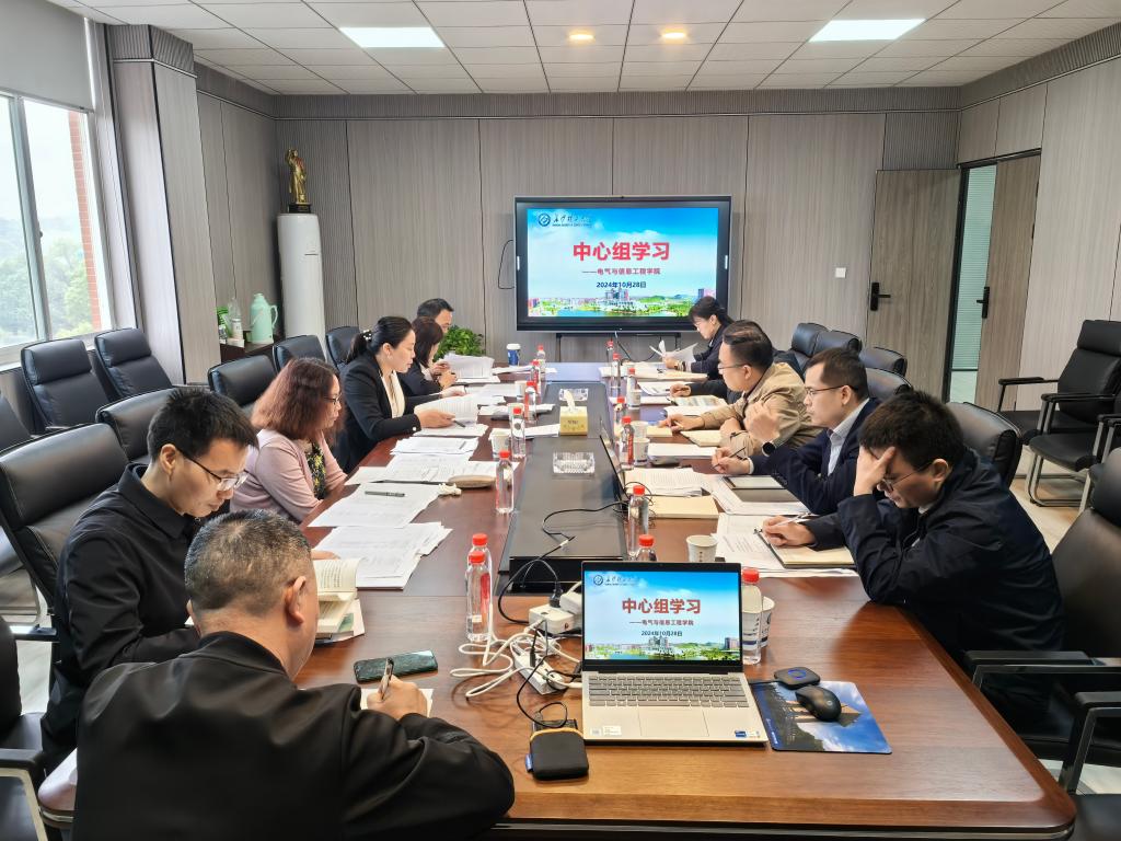 10月28日上午,院党委理论学习中心组在工一B301-4会议室开展集中学习研讨。院党委书记丁丹主持学习,校党委第六轮巡察第一巡察组侯伟建、郑咏梅到会巡听,院党政班子全体成员参加。