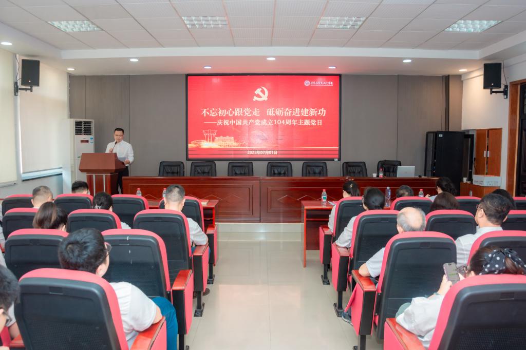 7月1日,学院庆祝中国共产党成立104周年“不忘初心跟党走 砥砺奋进建新功”主题党日活动在工一B503报告厅举行,学院党委班子、全体教工党员及学生党员代表200余人参加。湖南省委教育工委党校原常务副校长刘国华教授应邀上专题党课,院党委书记丁丹为新党员佩戴党员徽章、为全体师生党员颁发政治生日贺卡并讲话,院党委副书记周巍主持活动并带领新党员宣誓、老党员重温誓词。