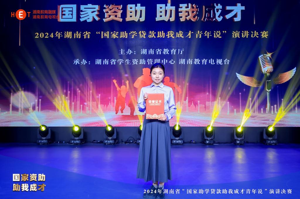 乔梦雪同学获得2024年湖南省“国家助学贷款助我成才青年说”演讲决赛一等奖