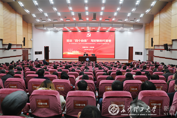 为深入学习贯彻党的十九届六中全会和湖南省第十二次党代会精神,12月31日下午,校党委书记付宏渊在云塘校区图书馆报告厅为机关党委全体党员、后勤中心和图书馆科级及以上干部作题为《坚定“四个自信” 写好新时代答卷》的宣讲报告。报告会由校党委副书记刘建民主持。