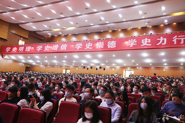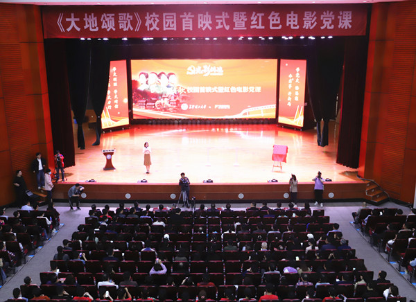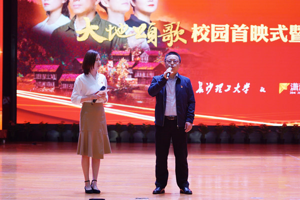 4月23日下午,《大地颂歌》长沙校园首映式在云塘校区大礼堂举行。省委党史学习教育领导小组办公室副主任、省社科院副院长汤建军,湖南广播影视集团(湖南广播电视台)党委委员、副总经理、潇湘电影集团党委书记、董事长谷良,taptap点点党委书记付宏渊及全体在家校领导出席首映式,全校千余名师生共同观影。