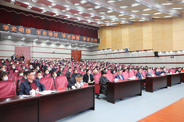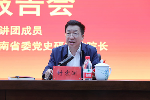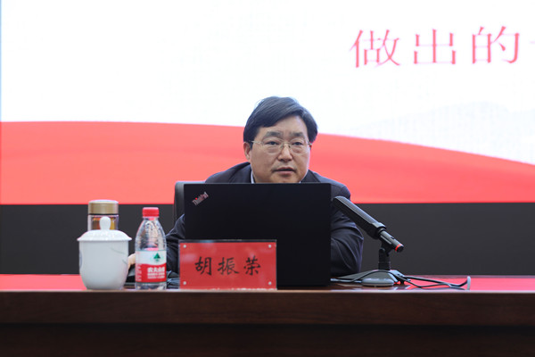 4月13日下午,党史学习教育省委宣讲团在taptap点点举行宣讲报告会,省委宣讲团成员、中共湖南省委党史研究院院长胡振荣作宣讲报告。校党委书记付宏渊主持报告会并讲话。