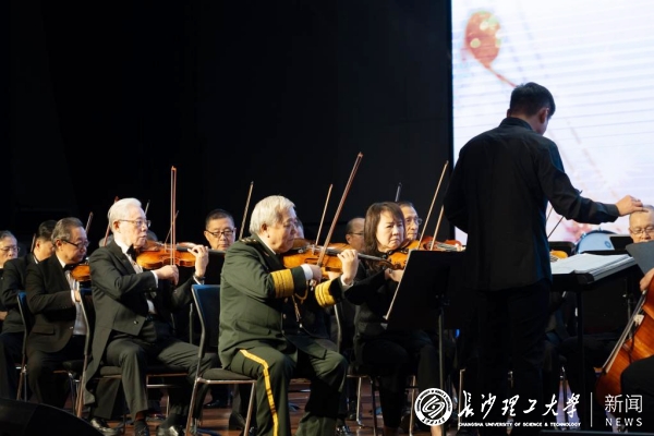 音乐会演绎了多首讴歌时代、赞美祖国的经典曲目,用音符串联起一代代人的家国情怀与奋斗记忆。慷慨激昂、脍炙人口的《红旗颂》表达了对英雄先辈的深切缅怀与崇高敬意;《红色娘子军》《花儿为什么这样红》等红色经典曲目,带领师生重温峥嵘岁月;《明月三章》《新春乐》等中国传统乐曲,传递出细腻祥和的意境,抒发了对美好生活的珍视;《第二圆舞曲》《天鹅》及德沃夏克《第九交响曲“自新世界”》第四乐章等国外经典作品,展现了多元的音乐文化与人类对美好未来的共同向往。音乐会在返场曲目《歌唱祖国》的全场大合唱中达到高潮,激昂的歌声凝聚了师生对祖国的热爱与为民族复兴贡献力量的坚定信念。
