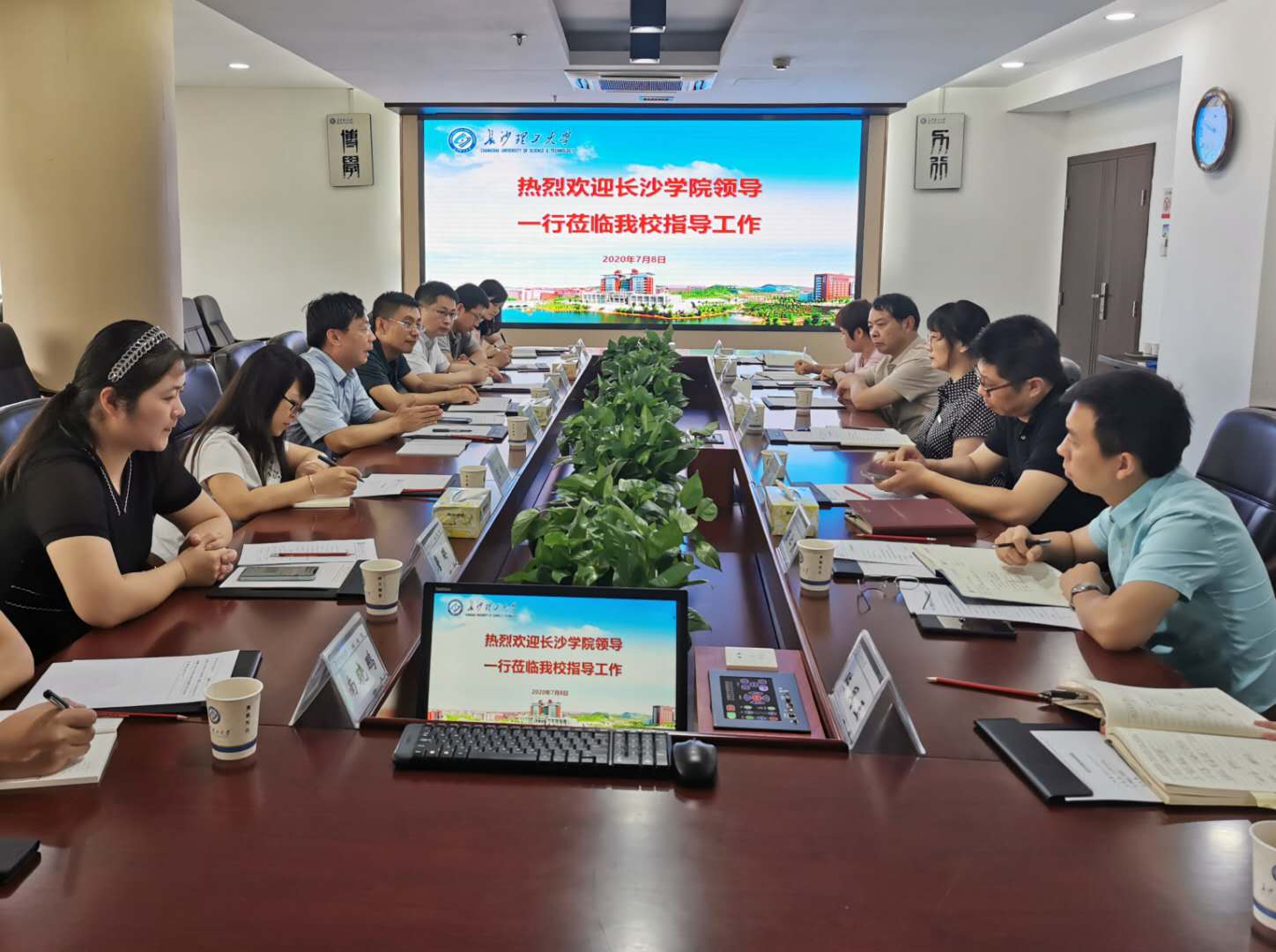 7月8日上午,长沙学院党政办主任兼发展规划处处长李学勇、电子信息与电气工程学院朱培栋一行8人来taptap点点调研。taptap点点党政办主任周艳红在一办公楼六会议室接待了来访人员,并主持了调研座谈会。科研部部长王磊、电气学院党委书记符慧林、党政办副主任陈仁凯、学科与规划处副处长张拥华和党政办机要保密科科长陈凤玉、文秘科科长任志祥参加了座谈。