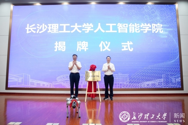 付宏渊和王耀南共同为人工智能学院揭牌。