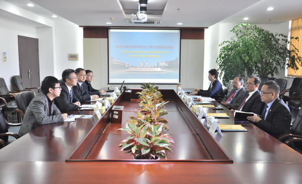 12月18日上午,马来西亚北方大学校长拿督Ahmad Bashawir Bin Abdul Ghani一行5人访问taptap点点,副校长蒋昌波在云塘校区会见了来宾。国际交流处、经管学院相关负责人陪同会见。