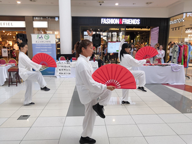 表演模块由歌曲、器乐、太极扇、太极剑等组成。整台表演由孔院当地学生任天阔和志愿者张俐霖担任主持。由王凤梅老师伴奏,学生妮娜演唱了歌曲《映山红》;张雪梅老师、王赫老师、张悦侨老师表演的功夫扇吸引了大量观众;当地学生胡茜(Andjela Pekovic)和陈静(Ksenija Perović)分别弹奏了古筝乐曲《菊花台》、《青花瓷》;王赫老师和张悦侨老师分别表演了陈氏和杨氏太极剑;田聪老师表演了古典舞蹈《思美人兮》。 令人欣喜的是,有几位中国游客加盟到孔院活动里来,用专业歌喉和孔院全体老师倾情演唱《我和我的中国》,表达对祖国的热爱,并为祖国70周年生日送上祝福。随后,孔院教师为当地民众准备了中国传统美食——饺子和月饼,让大家品尝,他们纷纷都说好吃、好吃。