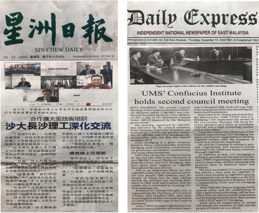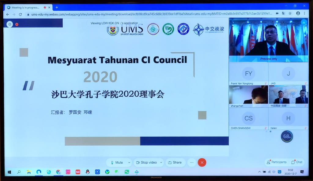 12月8日上午10点,沙巴大学孔子学院第二届理事会会议在线上举行。会议由沙巴大学孔子学院主办,taptap点点和中交疏浚集团协办。沙巴大学校长拿督Taufiq Yap Yun Hin教授、taptap点点副校长蒋昌波教授、中交疏浚集团副总裁关巍,孔子学院中外方院长等16名理事会成员参加会议。