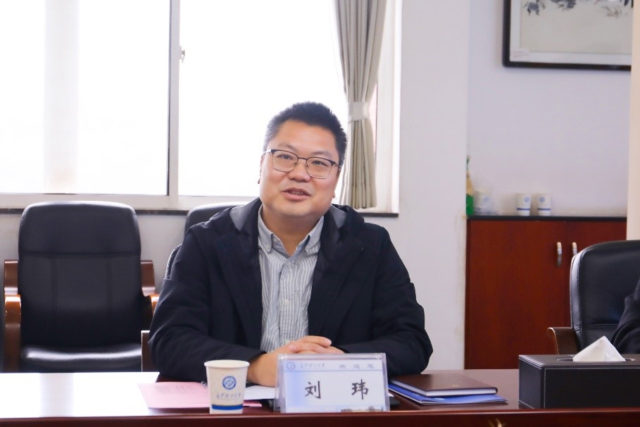 谈传生对刘玮一行的到来表示热烈欢迎。他简要介绍了学校的发展沿革、特色学科、代表性科研成果等情况。他希望通过双方的合作,构建起融合多学科的研究平台。一方面,服务企业需求,解决企业实际问题;另一方面,促使双方人才培养质量实现新的提升。