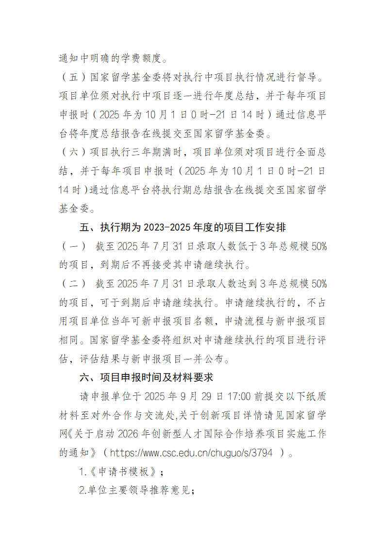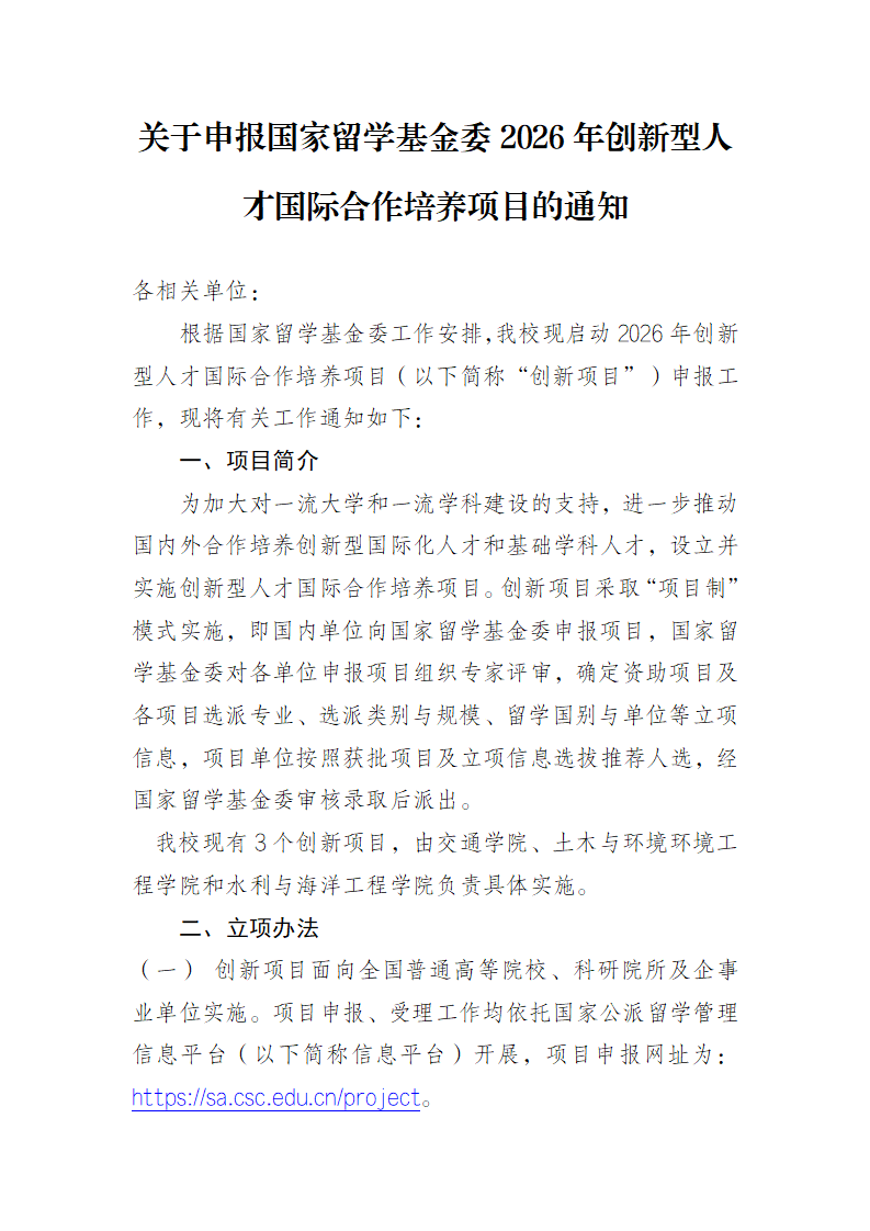 关于申报国家留学基金委2026年创新型人才国际合作培养项目的通知
