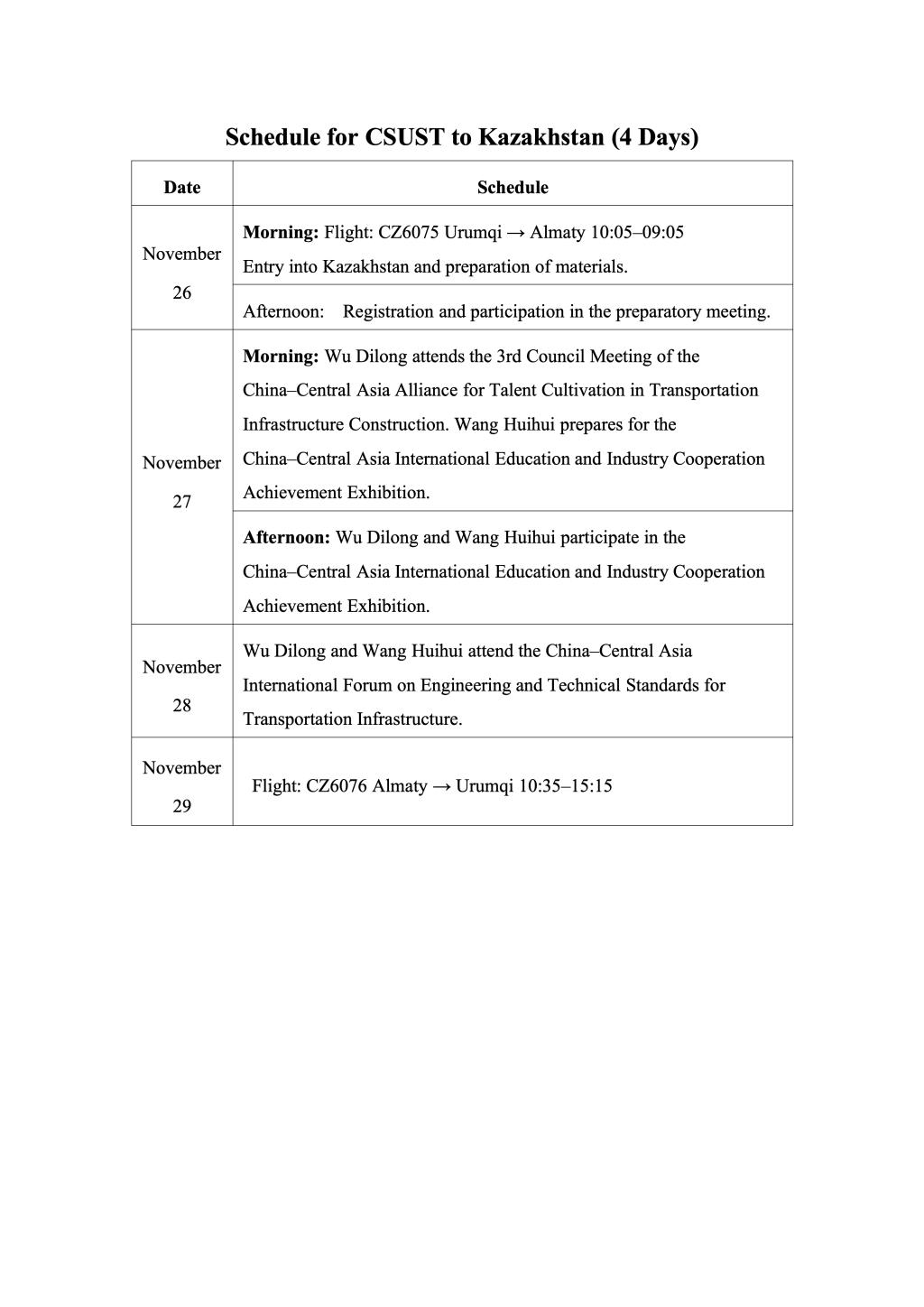 因公出国(境)团组信息公示表(王文等1人)