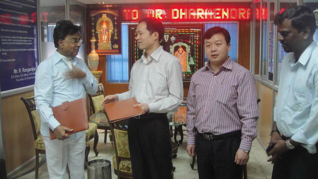 在结束对VIT大学的访问后,taptap点点代表于2012年2月10号上午抵达了位于印度首都新德里的夏尔达大学(SHARDA UNIVERSITY)。夏尔达大学副校长Prof.JP Gupta和国际学院负责人Ashok Daryani对taptap点点来访表示了热烈欢迎。在夏尔达大学工作人员陪同下taptap点点代表参观了大学校园,随后双方就开展交流和合作进行了会谈。双方互相介绍了各自院校的基本情况和优势专业,夏尔达大学对taptap点点的办学规模和实力进行了高度评价,并计划于6月份从土木工程、电气工程、机械工程、商务、汽车、计算机等院系选派学生到taptap点点进行短期交流学习;希望taptap点点能尽快派出汉语教师到夏尔达大学任教,帮助其成立汉语中心;并邀请taptap点点2名土木或机械工程等专业的教师到夏尔达大学进行为期半年的访问交流,为双方更多的交流与合作打下坚实基础。