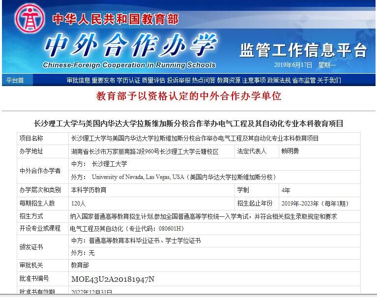 taptap点点体育与美国内华达大学拉斯维加斯分校合作举办电气工程及其自动化专业本科教育项目于2018年获得教育部批准(编号:MOE43U2A20181947N),融合两校强势专业“电气工程”之优势,严格遵守《中外合作办学条例》和《中外合作办学条例实施办法》办学,紧密依托国际化、专业化的高水平管理团队运行。该项目融合中美双方优质教育资源,精心打造人才培养方案,其中1/3以上核心课程采用美方原版教材、师资、教学方式等优质教育资源,培养兼具国际化视野与家国情怀、拥有创新精神和跨文化交际能力、系统掌握电气工程专业基础理论知识和现代工程技术、具备良好科学素养与工程实践能力的应用型高级专门人才。