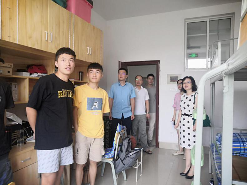 2020823日,国际学院院长陈瑜、党总支副书记兼副院长张锐、副院长秦卫星,以及学工办的全体老师深入学院学生寝室,看望学生。