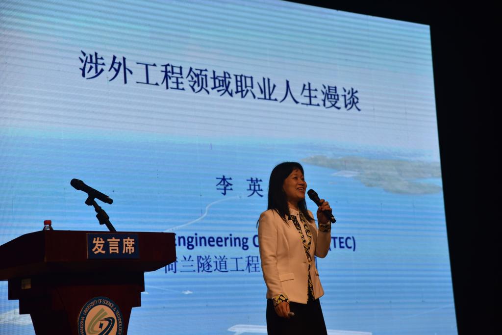 李英以“涉外工程领域职业人生漫谈”为题,从作为咨询方TEC公司代表参与港珠澳大桥建设过程中的经历,结合个人译著《伙伴关系:厄勒海峡通道项目管理成功之道》中的精辟论述向在场的同学们介绍如何规划自己的职业人生。