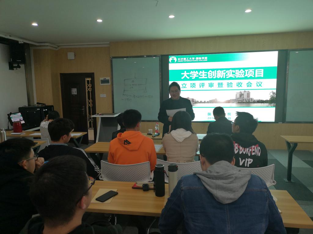 3月15日下午,国际学院大学生创新实验项目立项评审暨检查验收会在云塘校区新能源大楼1号楼404举行。项目评审与验收小组由来自交运、水利学院的何忠明、谌宏伟、向顺成等专家组成。6个大学生创新实验项目参加立项申报答辩,4个项目参加中期检查和结题验收,全院50多名中外合作办项目(土木工程专业)学生与会。会议由专家组组长何忠明教授主持。