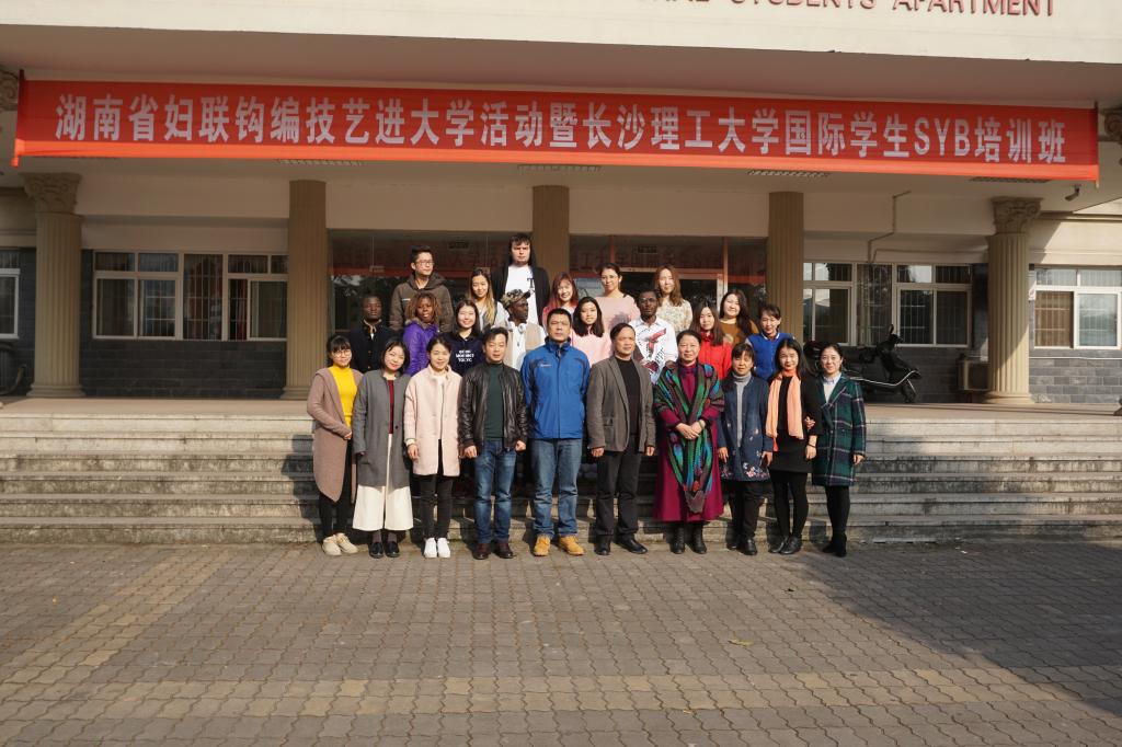 12月9日上午,培训班在留学生公寓文化教室举行开班仪式。省妇联妇女发展部调研员韩杰、主任科员郑丽萍、长沙理工大国际学院党委副书记兼副院长吴振华、湖南省女红协会副会长欧沛琼、国际学院留学生工作办公室以及欧式手工针织工作室的老师们出席了仪式。国际学院获得“孔子学院奖学金”、“湖南省一带一路奖学金”的国际学生们作为培训班学员一同参加。
