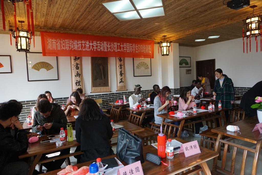 在十九大报告中,习近平总书记强调鼓励大学生“大众创业、万众创新”是中国持续的发展动力。为进一步加强对留学生的创新创业教育,提高他们的创业意识和技能,促进国际友好交流,引导更多留学生了解中国“非遗”文化,促进“一带一路”指尖技艺传承,国际学院举办“湖南省妇联钩编技艺进大学活动暨taptap点点体育国际学生SYB培训班”。