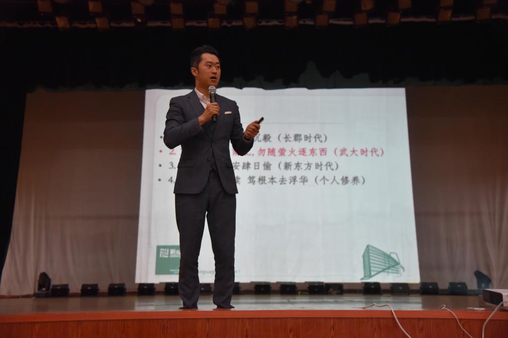当晚19时,讲座正式拉开帷幕。全校各学院1300多名慕名而来的学生近距离感受新东方名师风采,帅气、幽默的范超老师在开场后向同学们分享了自己的学习经历,很快就征服了在座的同学们,赢得了阵阵掌声。他图文并茂地将自己的大学求学经历及在新东方12年不平凡的奋斗经历带给了大家启迪和思考----“宜观星辰辨南北,勿随星火逐东西”、同样是在大学的青春岁月里,不一样的人生态度,完全会迈出不一样的人生轨迹。有目标、有激情、有奋斗,青春的飞扬才正开始。他的积极向上,奋勇拼搏,激情四射,永不言弃,感染了在座的每一位长理学子。