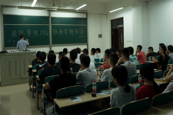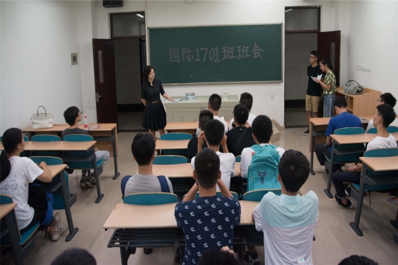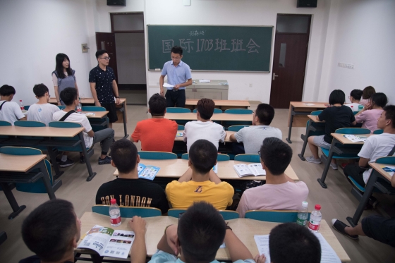 9月10日晚,国际学院2017级新生在文科楼A区3楼301、302、305等教室召开各班第一次班会,班会由班主任主持。学院高度重视新生工作,院长陈瑜教授带头担任新生班级班主任。